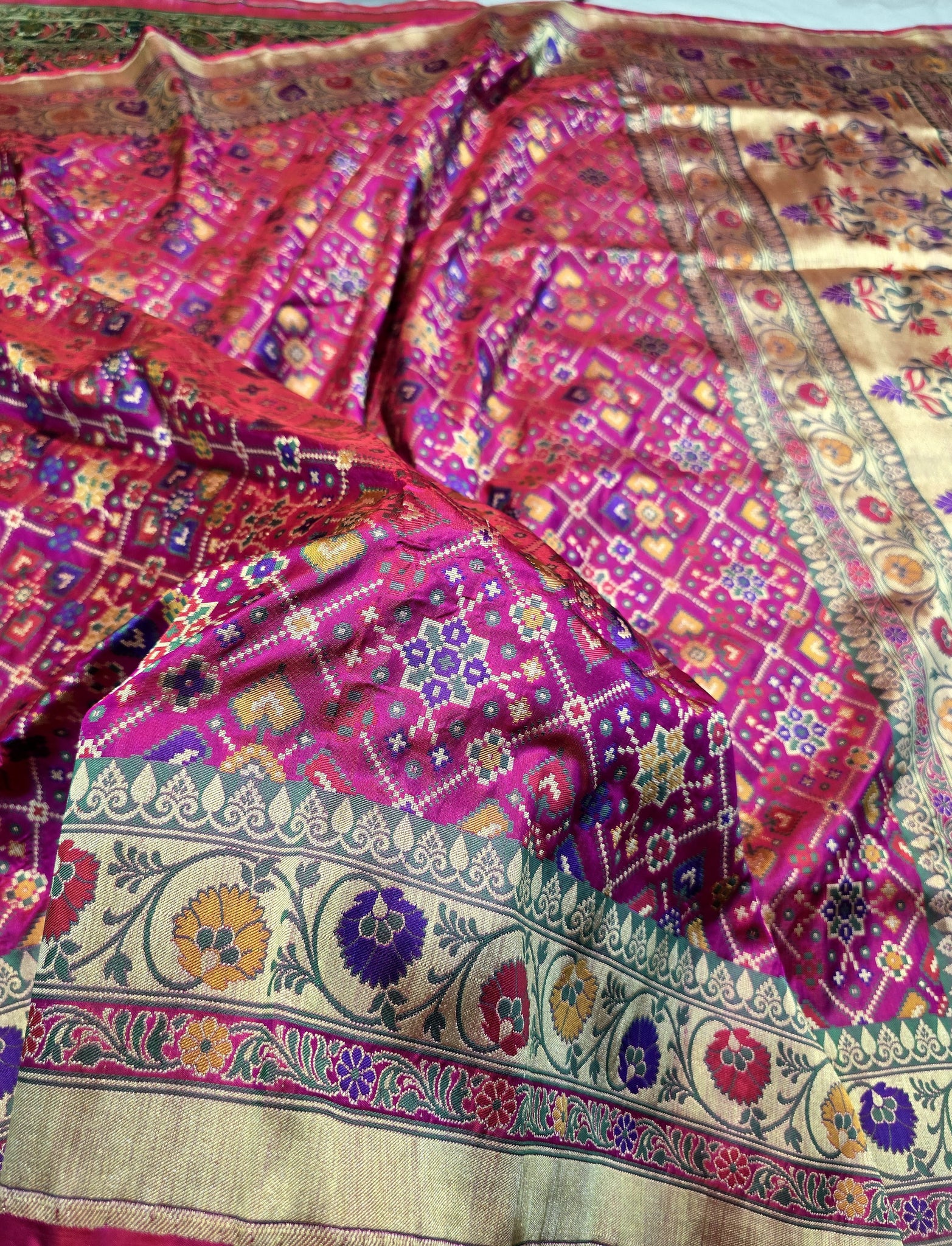 Pure BANARASI katan tilfi dhakai jamdani on double zari weaved and minakaari.
