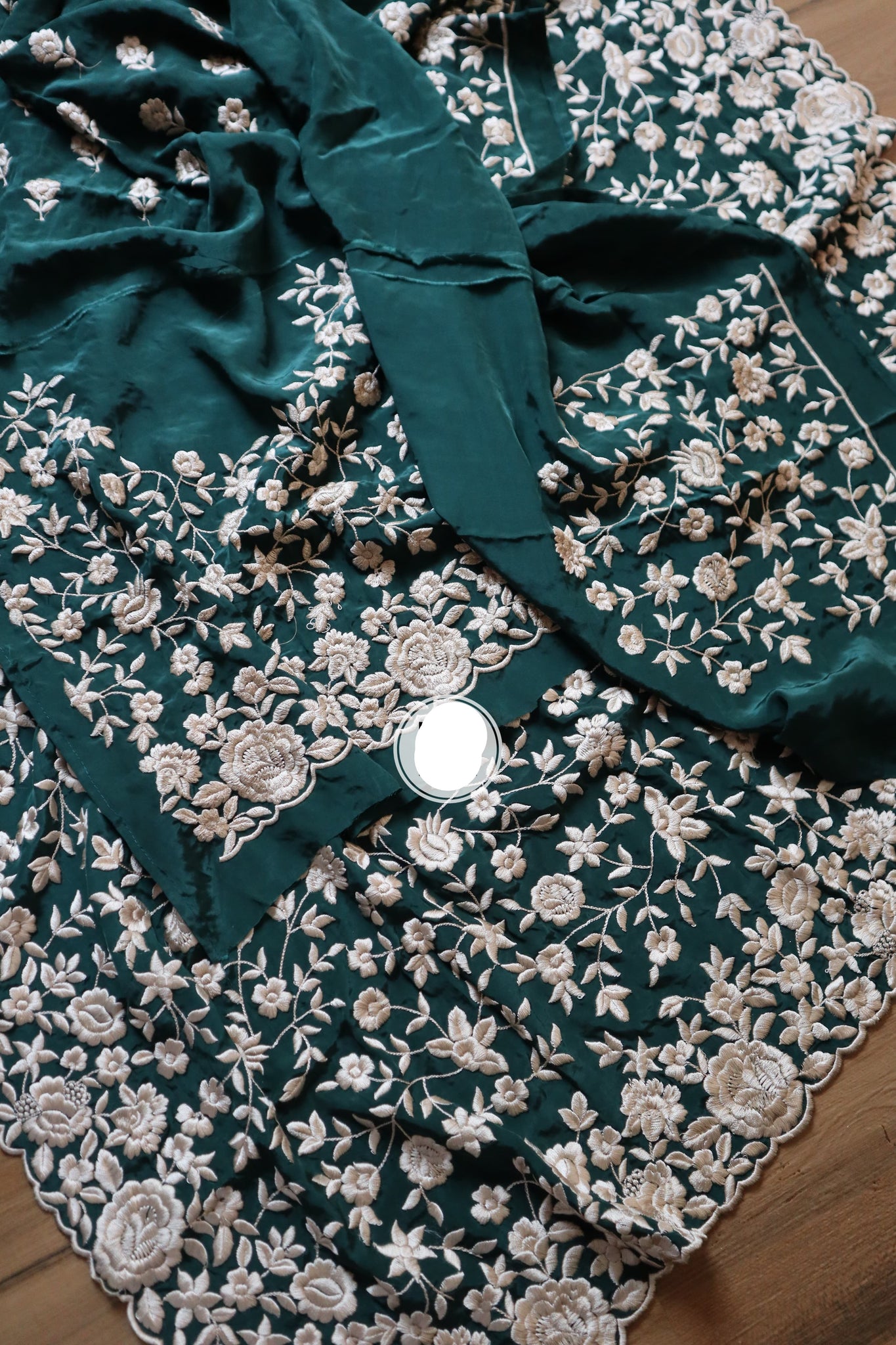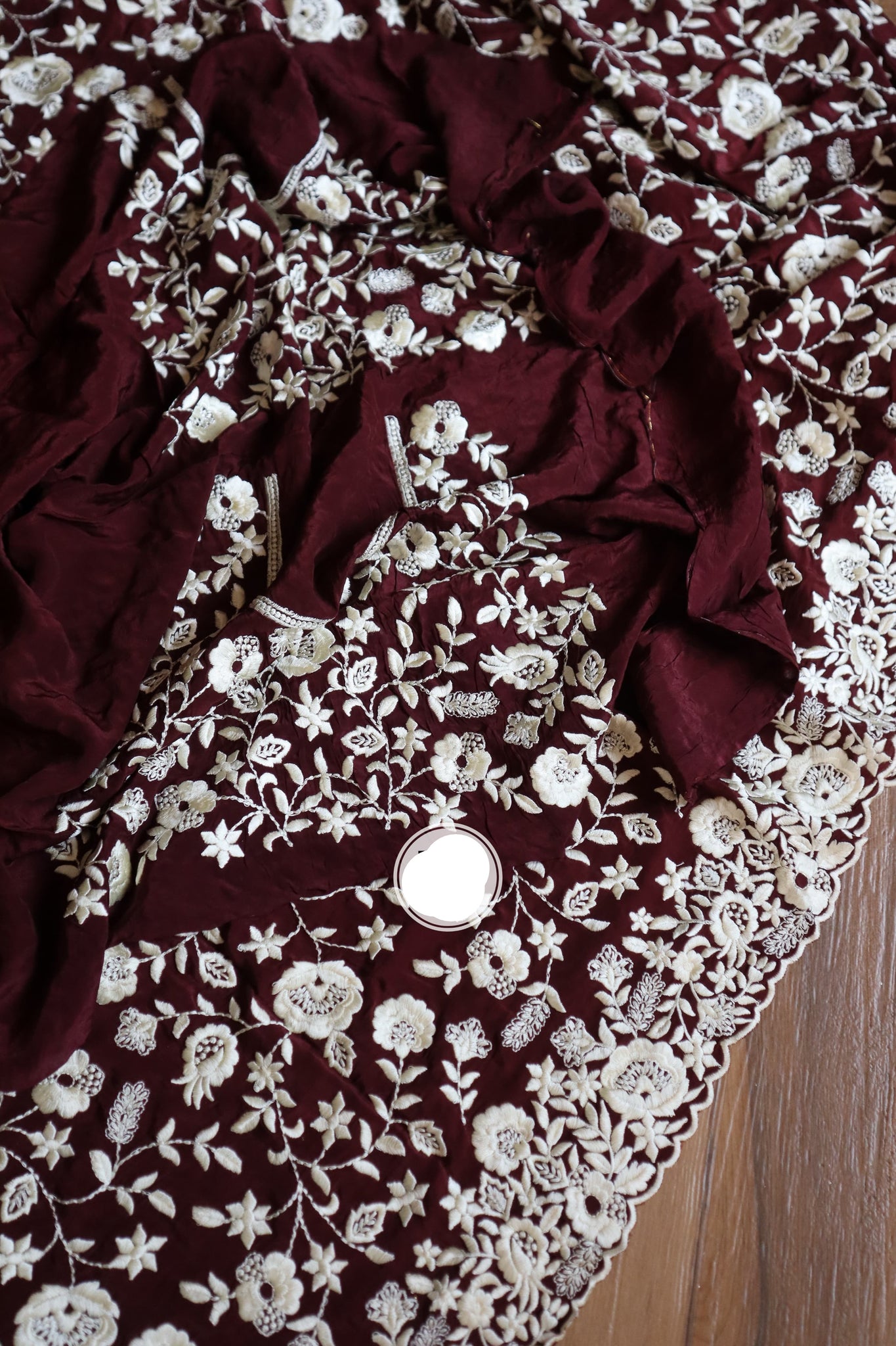 Expertly crafted with delicate crepe fabric, the Crepe Parsi saree is a must-have for any traditional wardrobe. Its lightweight and airy texture ensures a comfortable fit, while its unique Parsi embroidery adds a touch of elegance. Perfect for any occasion, this saree effortlessly blends old-world charm with modern sophistication.