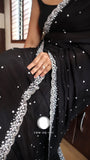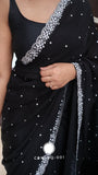 Black premium crepe silk saree partywear sarees Indian sari blouse