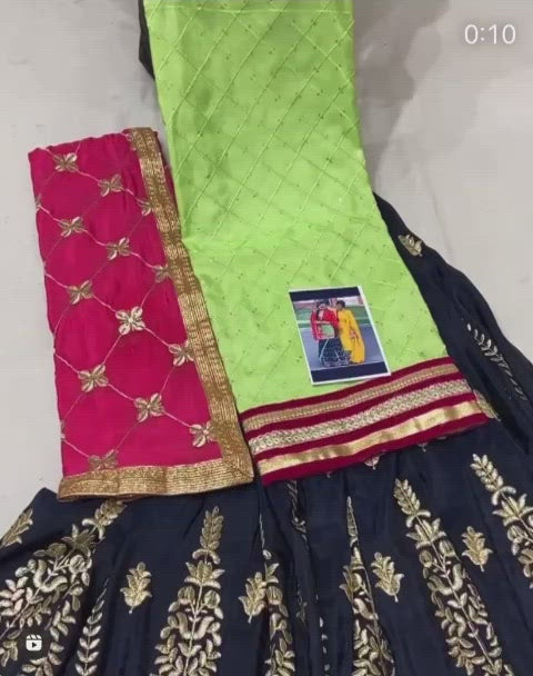 Upada silk base embroidered shirt( FULL FRONT AND BACK) and heavy embroidered shrara