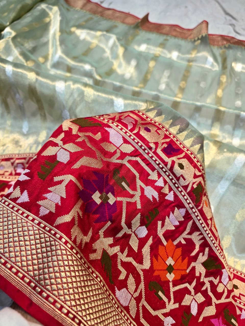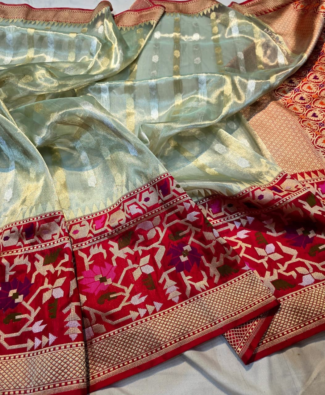 Pure BANARASI handwoven kora tissue dhakai jamdani paithni.