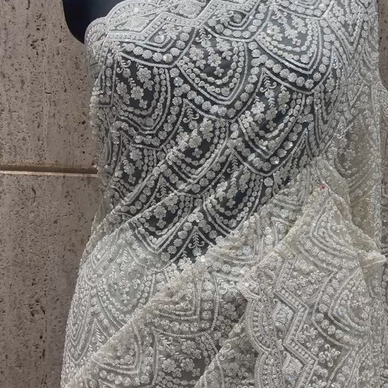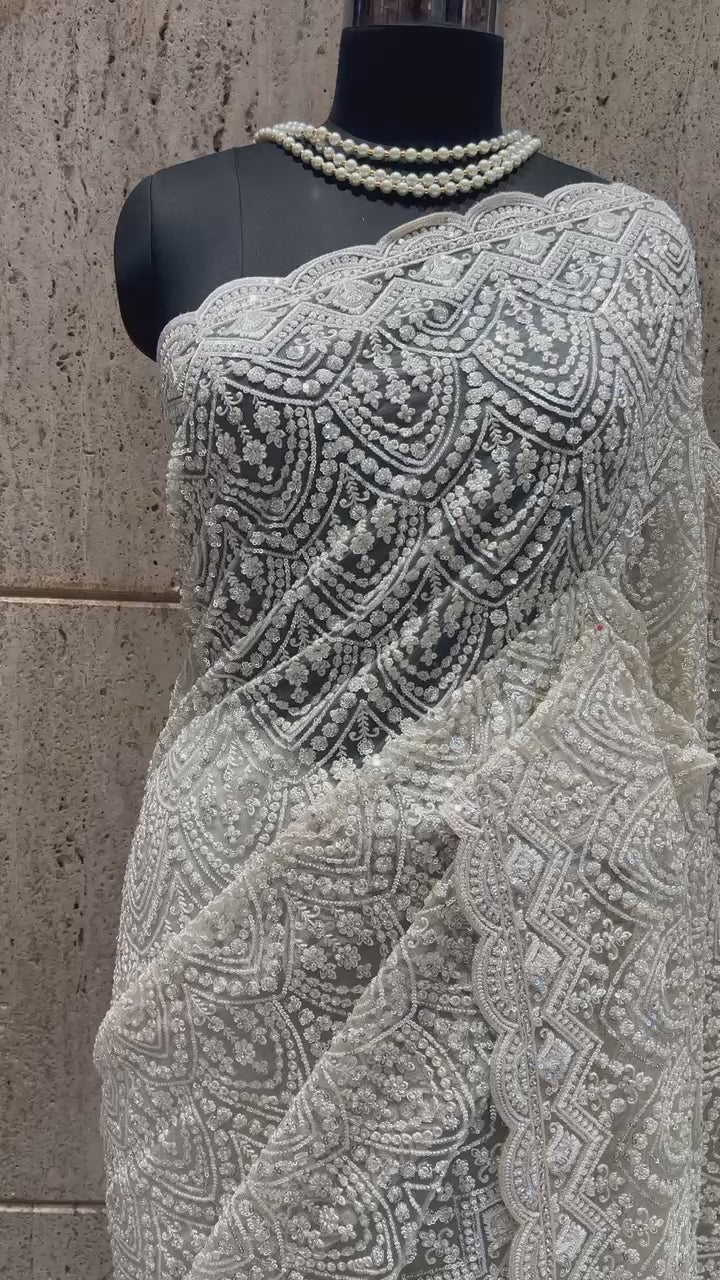Royal white saree designer saree Indian wedding sarees blouse