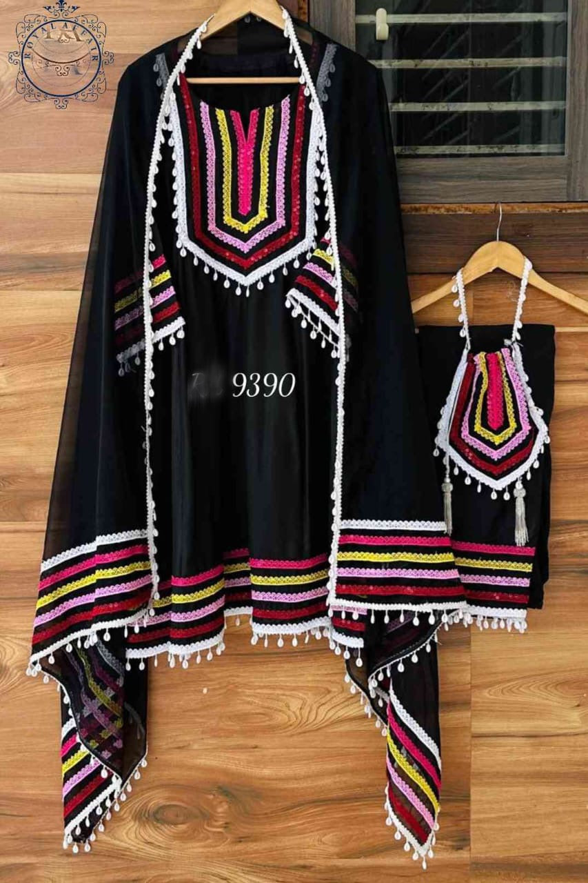 pure tissue shimmer designer stiched A LINE shirt with beautiful pattern plus hand embroidered lace detailings on ghera and sleeves...(attached inner)