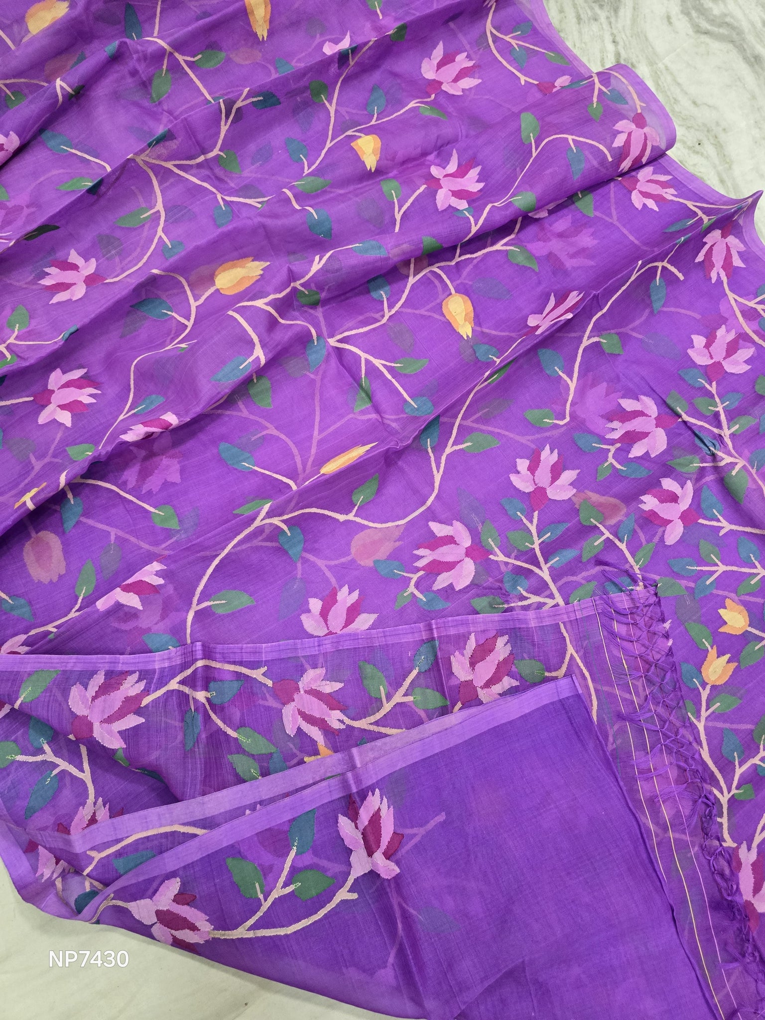 Expertly handwoven with pure tantuj muslin, this jamdani saree is a luxurious and elegant addition to your wardrobe. The lightweight fabric ensures comfort while the intricate designs add a touch of traditional craftsmanship. Complete with a blouse piece, this saree is perfect for any occasion.