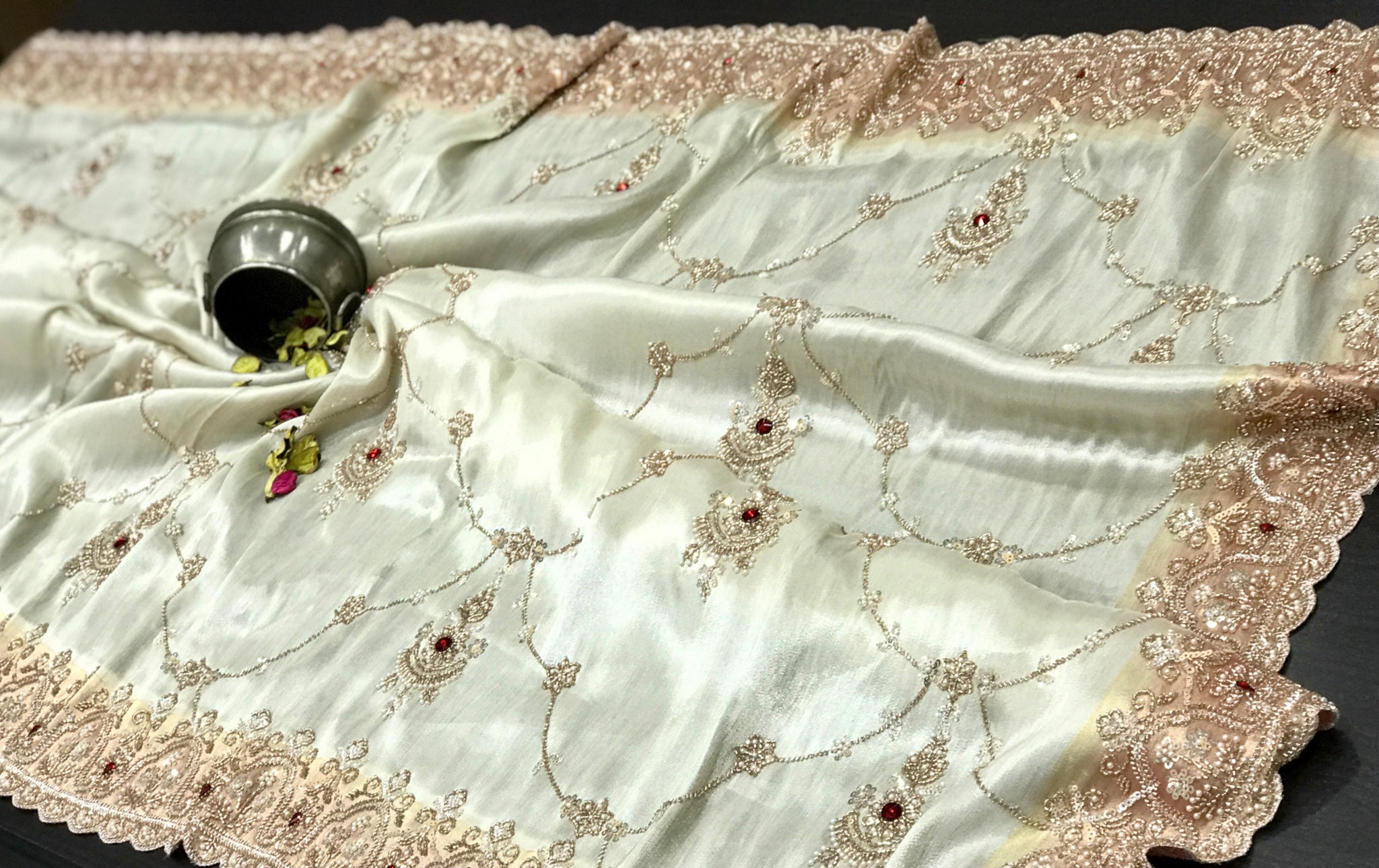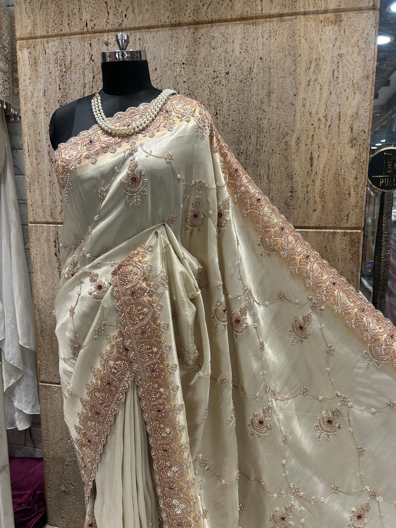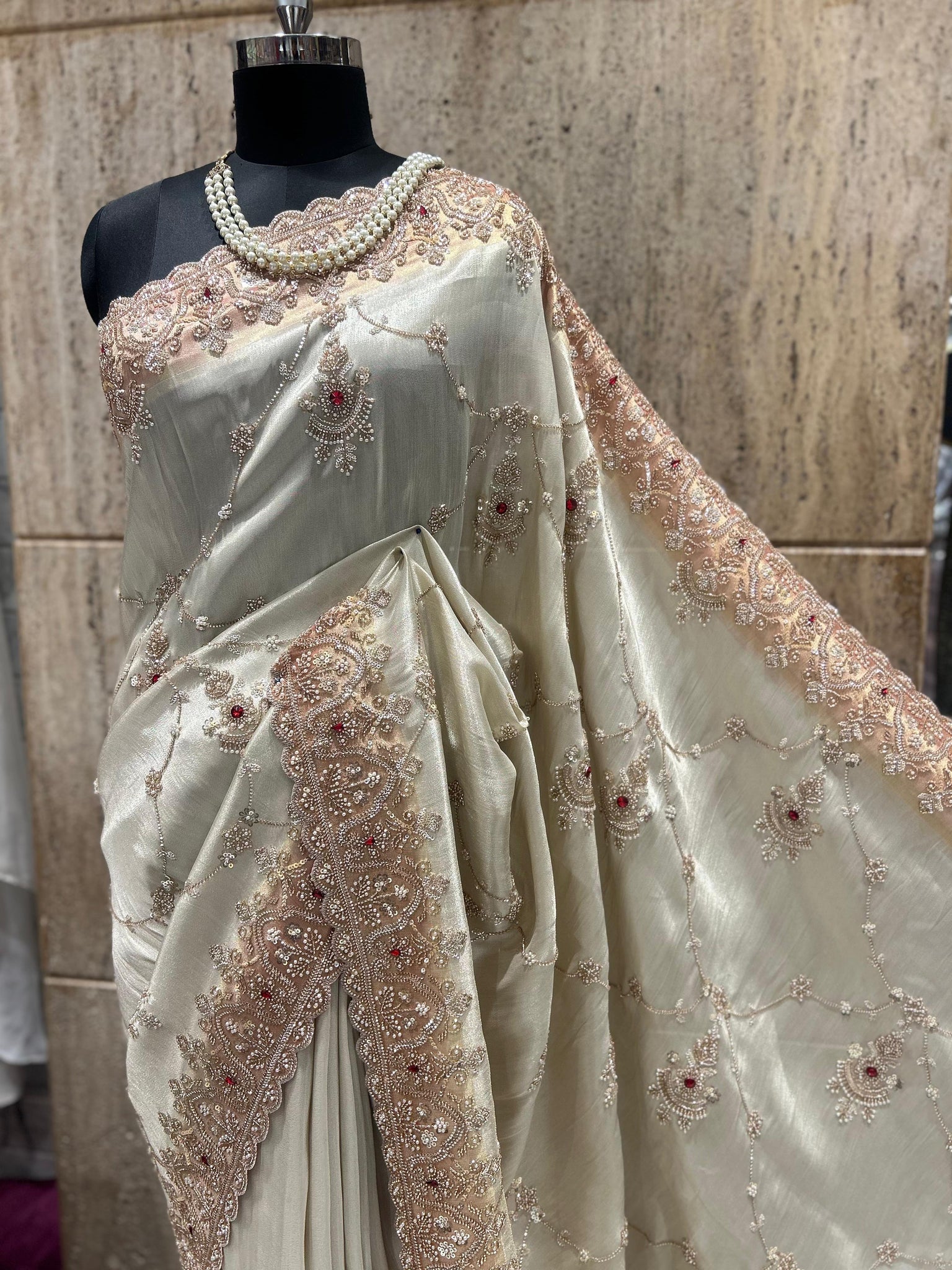 Pure Silk Kanjivaram Sarees With Intricate Handwork Of Cutdana , Sequence & Pearls with maniratnam stones with scalloped border and Super Gorgeous Blouse