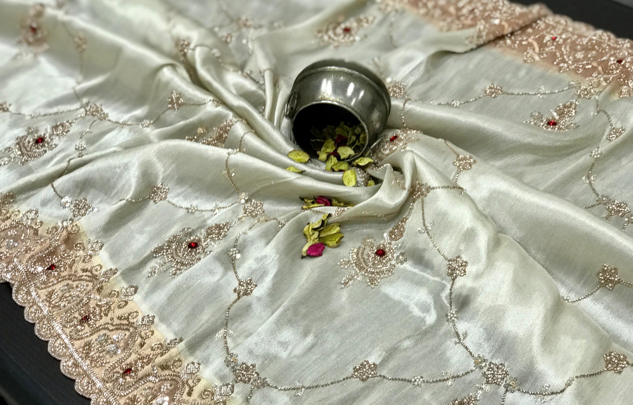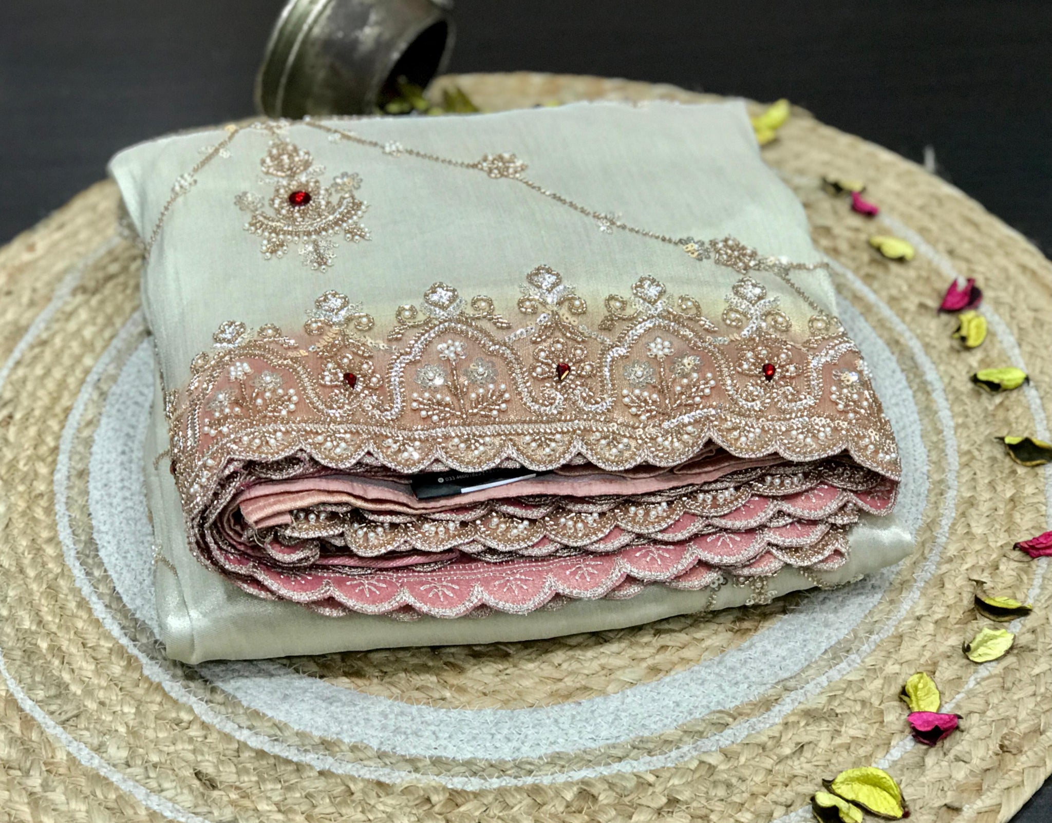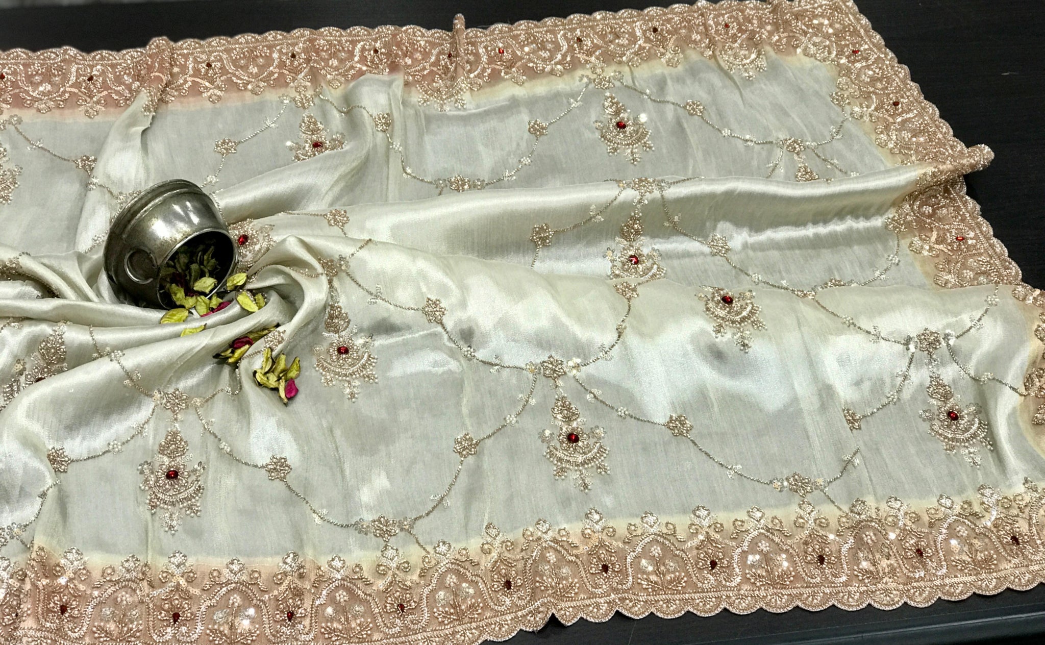 Pure Silk Kanjivaram Sarees With Intricate Handwork Of Cutdana , Sequence & Pearls with maniratnam stones with scalloped border and Super Gorgeous Blouse