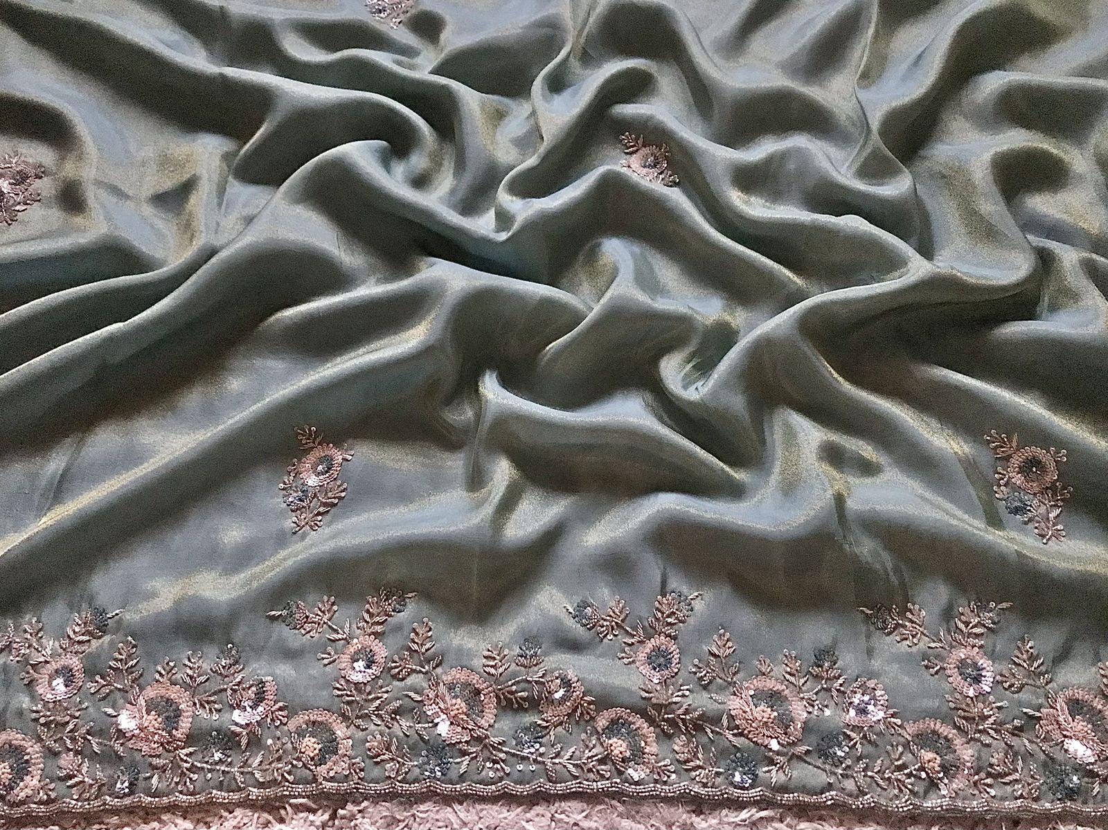 Sea Green Premium Pure Banarasi Zari Tissue Silk drapes of luxury embellished with extraordinarily beautiful zardozi handwork & running zardozi handwork bp