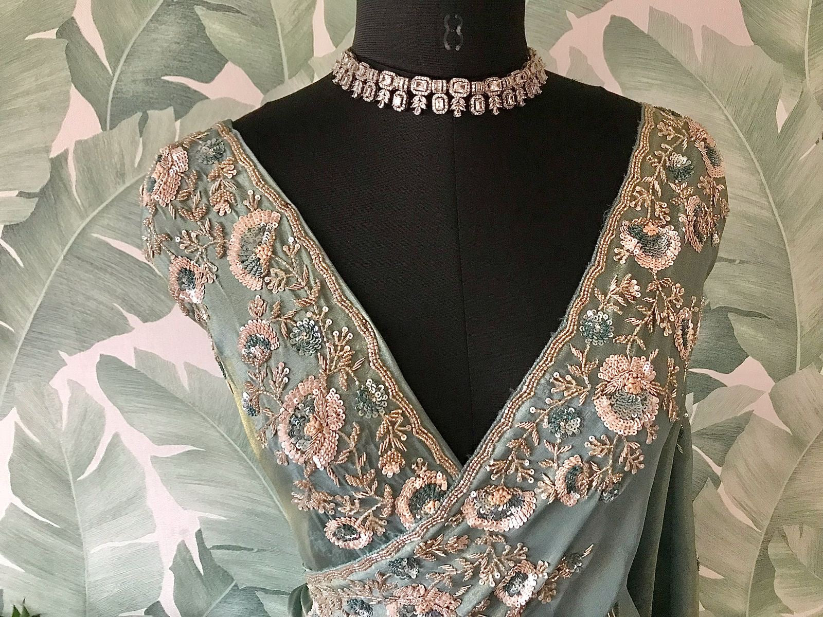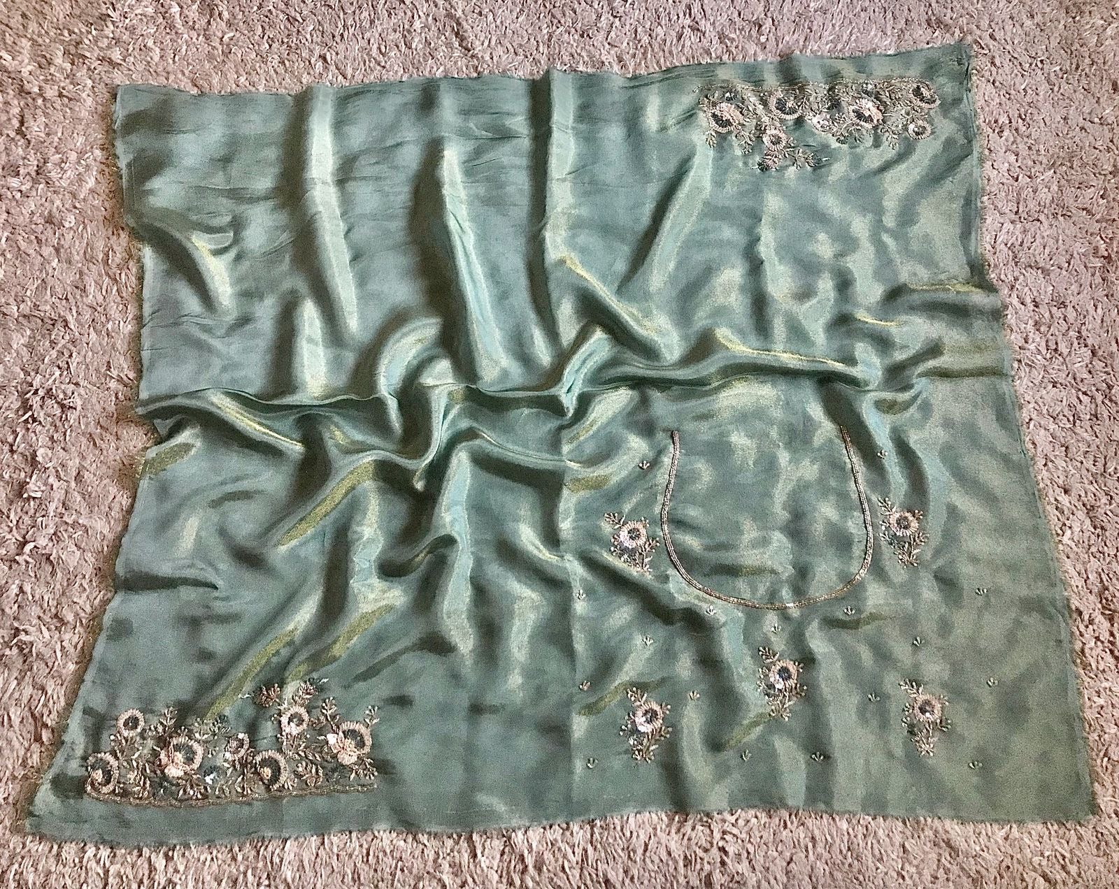Sea green Banarsi saree tissue Zari saree Indian sari blouse