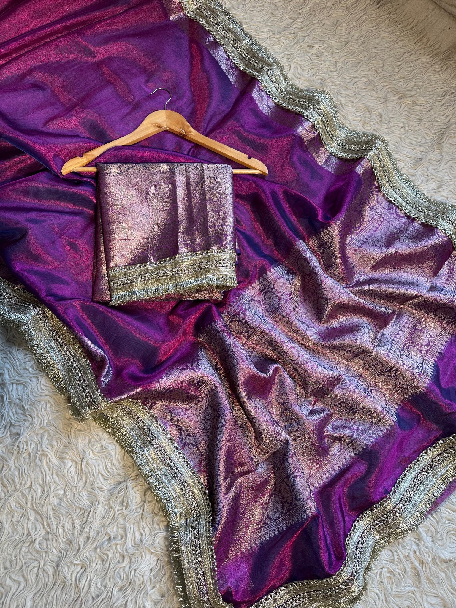 Vahiba Banarsi tissue silk saree lace sari blouse
