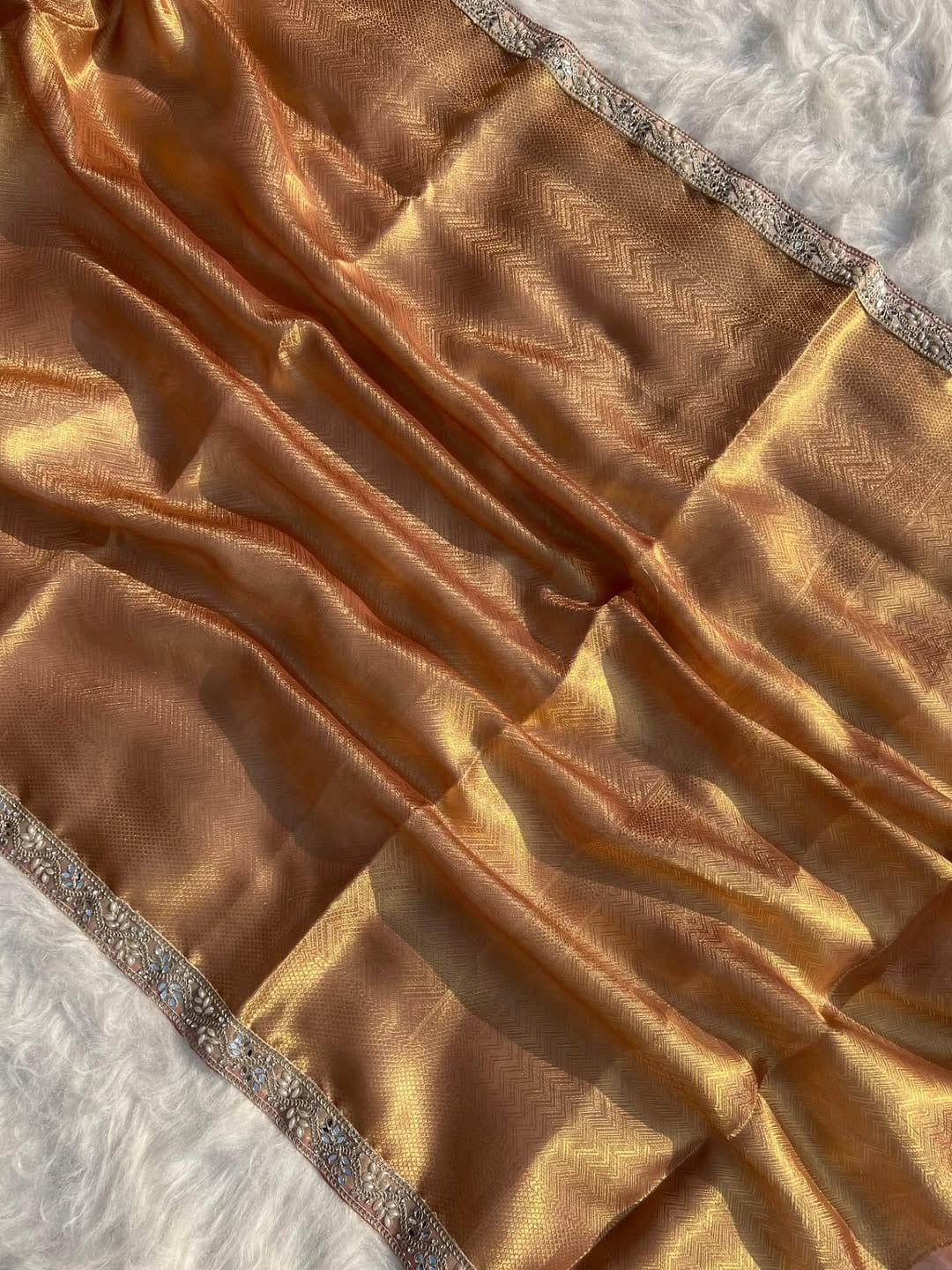 Crafted from luxurious Banarsi soft silk, this saree is a must-have for any fashion-forward woman. With its intricate design and high-quality fabric, this saree effortlessly blends elegance and comfort. Perfect for any occasion, this saree will make you stand out with its unique style and timeless appeal.