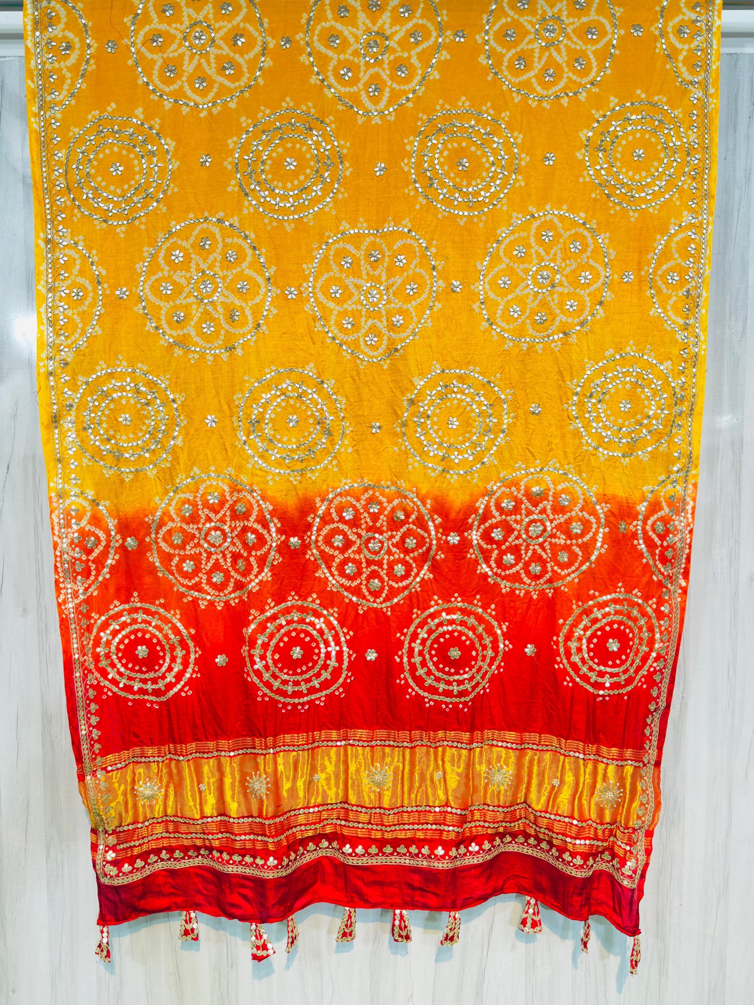 Pure gajji silk bandhani dupatta with gottapatti handwork